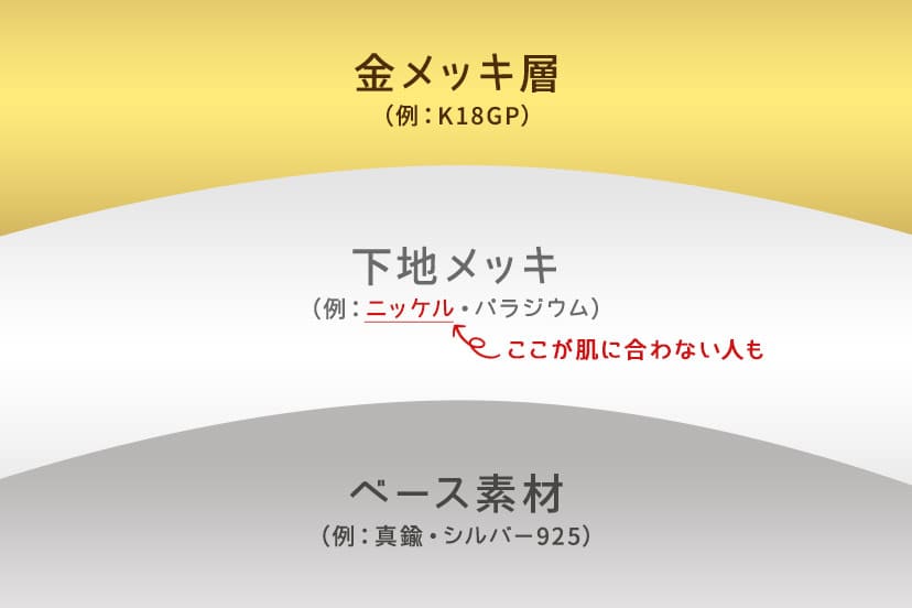 ニッケルは価格が安く、密着性を高めるのに優秀ですが、金属アレルギー反応を起こしやすい金属としても広く知られています。