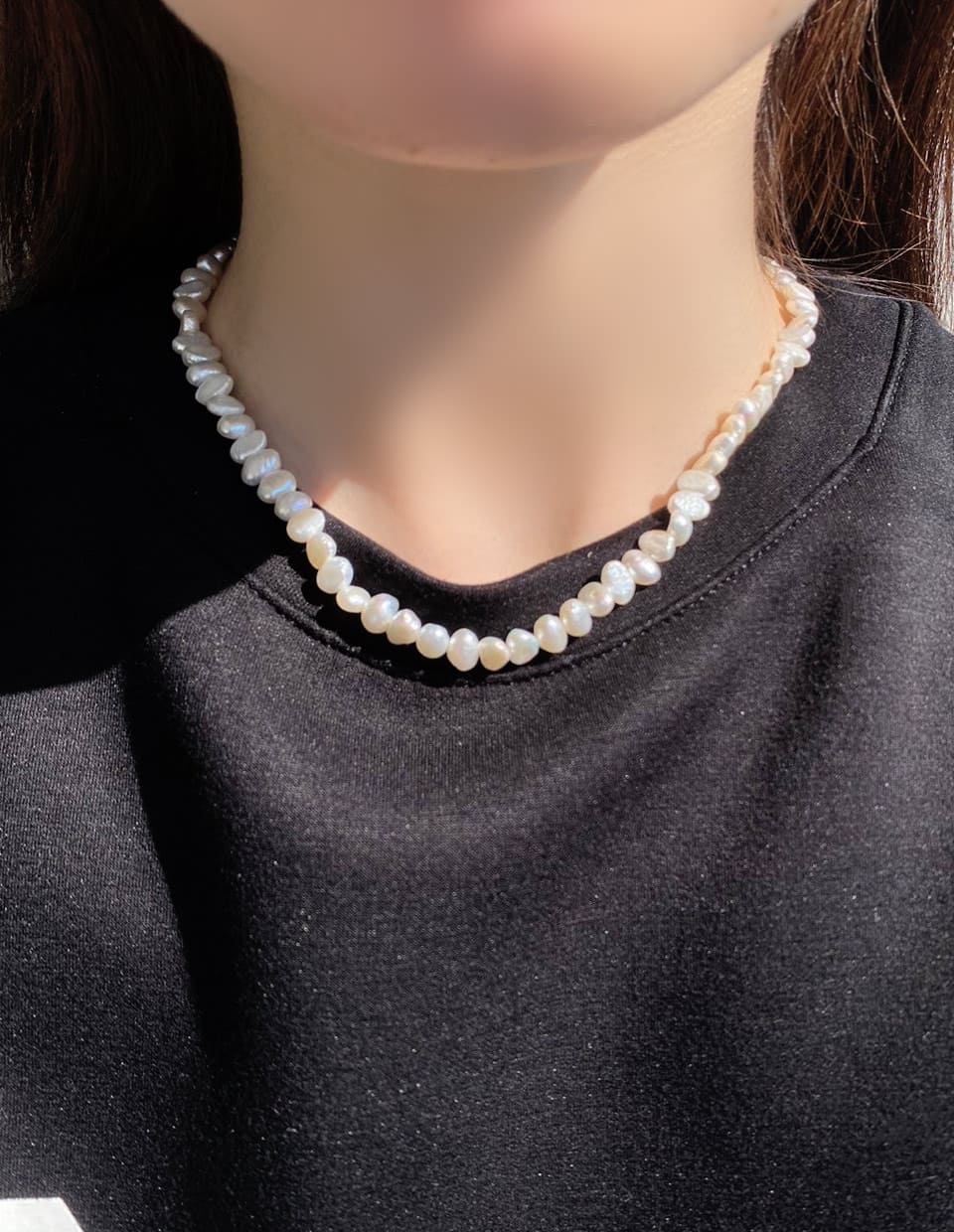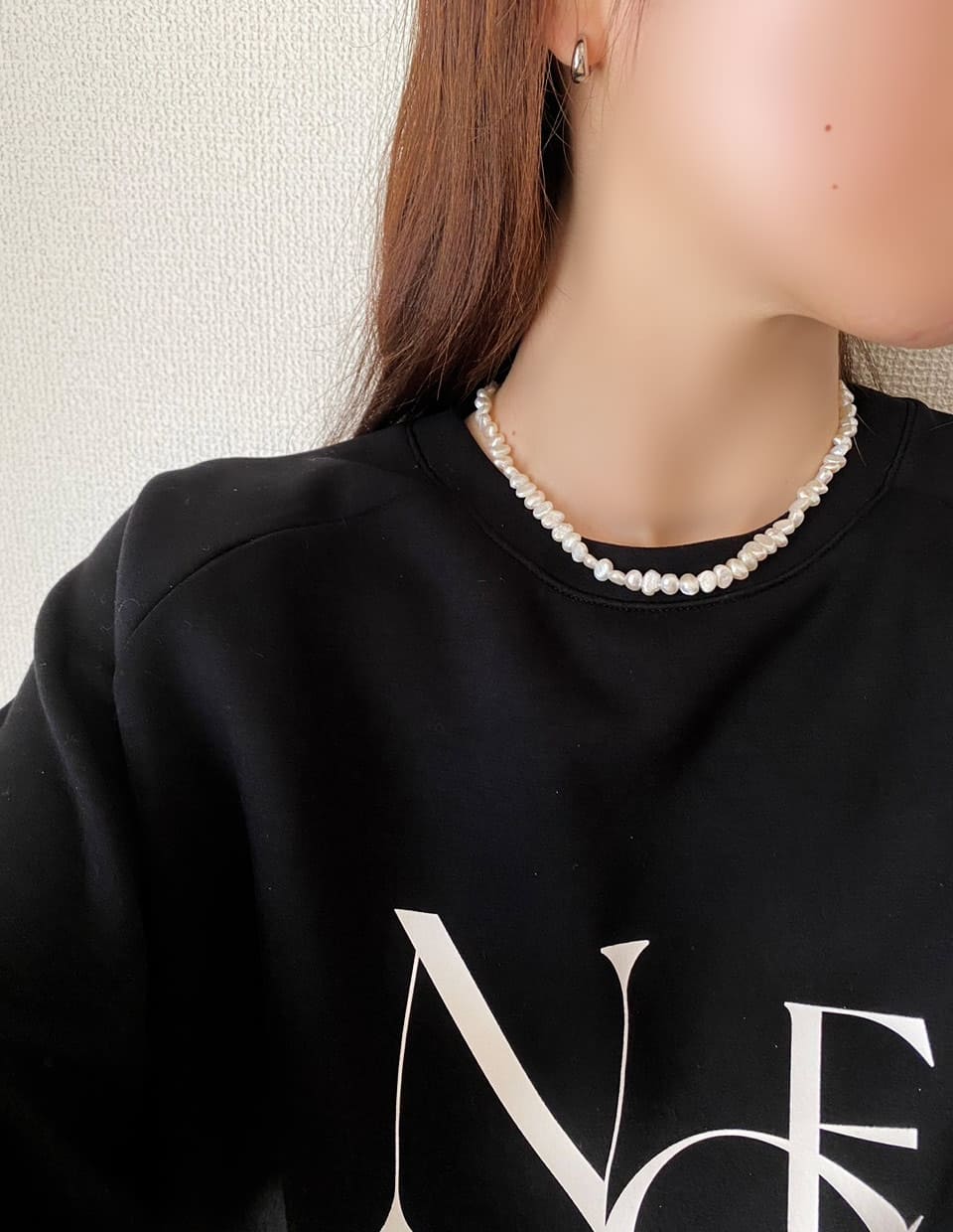 パールの乳白色で柔らかい輝きが首まわりを明るくするので、何となく気分も上がりオーラもハッピーに。